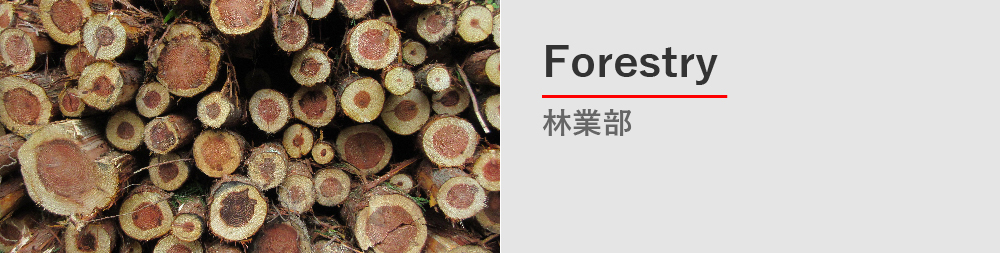 林業の仕事は、木を植えて手入れをしながら、育てて伐って売る仕事ですが、自然災害や国土の維持等、環境問題や地域社会の貢献に重要な仕事でもあり、当社肝いりの部門です。
