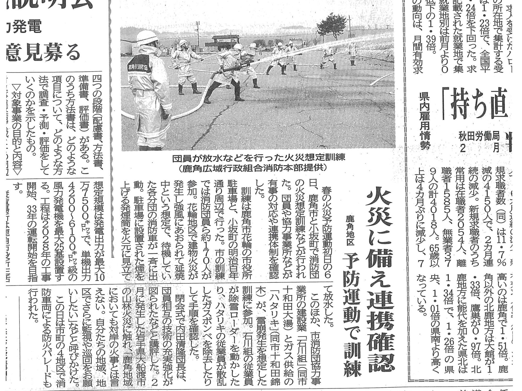 4月6日に鹿角市春の火災予防運動の訓練に参加しました。
