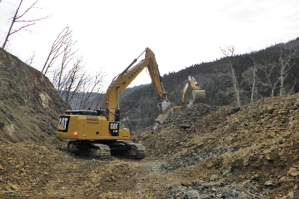 山を切り崩して石をとります。